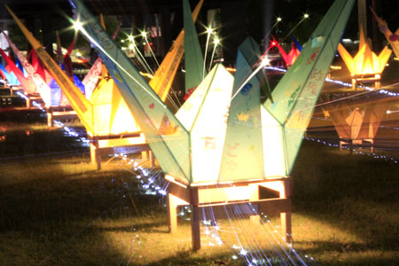 フラワーフェスティバル夜のイベントの折鶴のイルミネーション&フラワーキャンドル